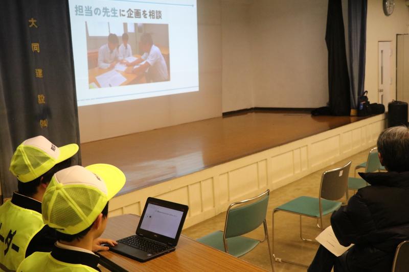 沼田東コミセンにて、12月13日に東京で開催されるエナジーサミット最終選考会に出場する第五中学生を迎えて、発表内容を披露して貰いました。