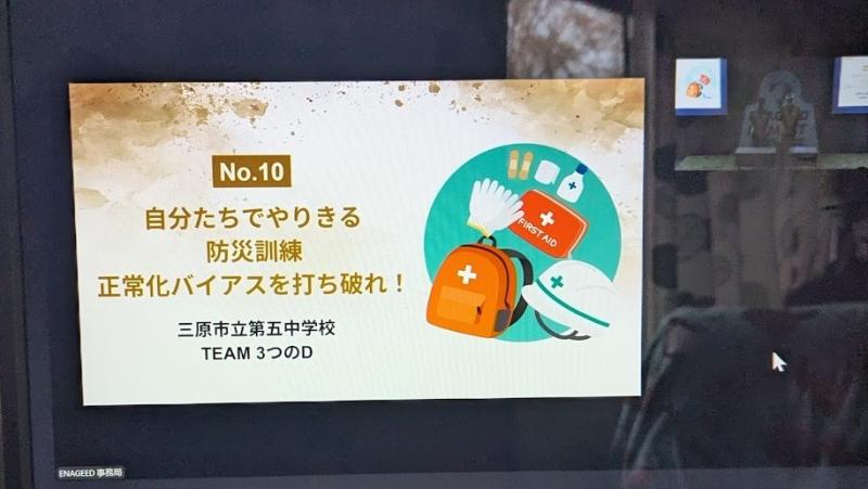 第五中学校 濱岡君&藤井君が、東京であったエナジードサミットにて「HATUAN」賞という優秀賞に輝きました。