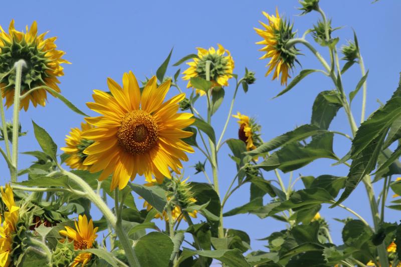 町内のひまわりです。太陽に向かって咲くひまわりは、夏の象徴です。青空の下、広がる黄色のは花々が風に揺れ、見る人の心を明るくしています。夏の花と言えば、やはりひまわり、元気を貰える風景となります。≫ 続きを読む