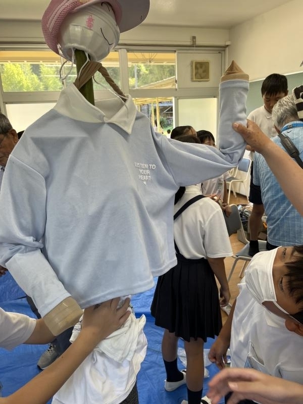 沼田東小5年生の皆さんと一緒に、米作り体験学習の一環として案山子つくりを行いました。