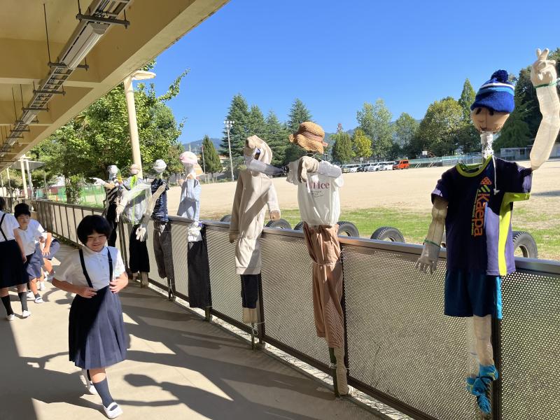 5年生50数名が8グループに分かれ8体の個性あるれる案山子を完成させました。