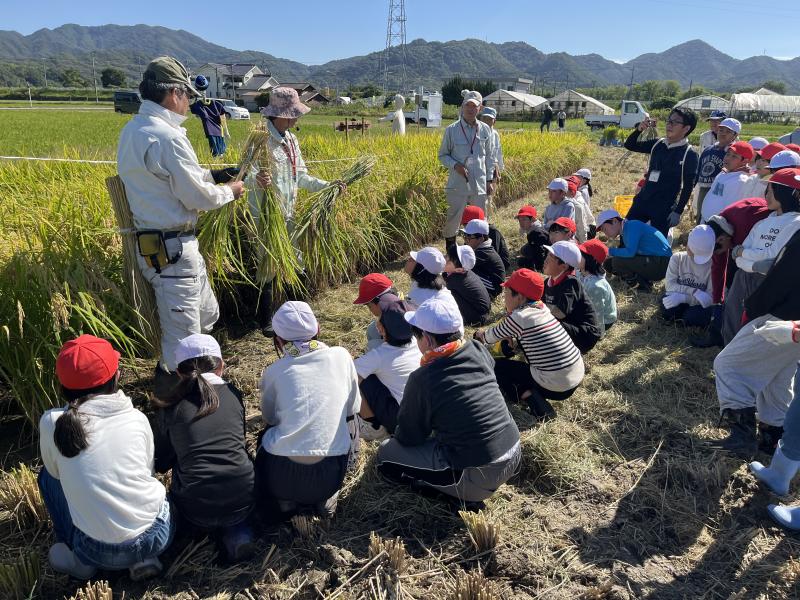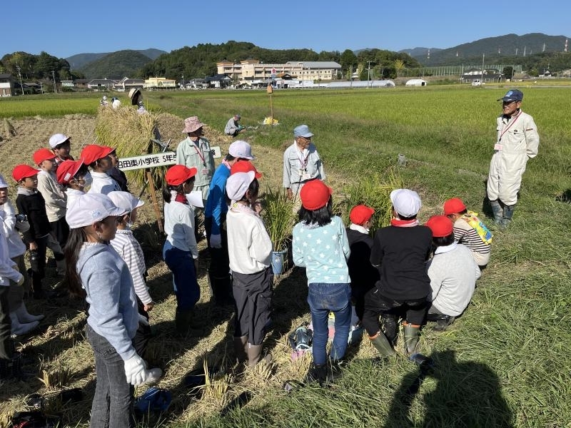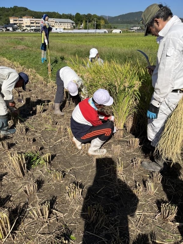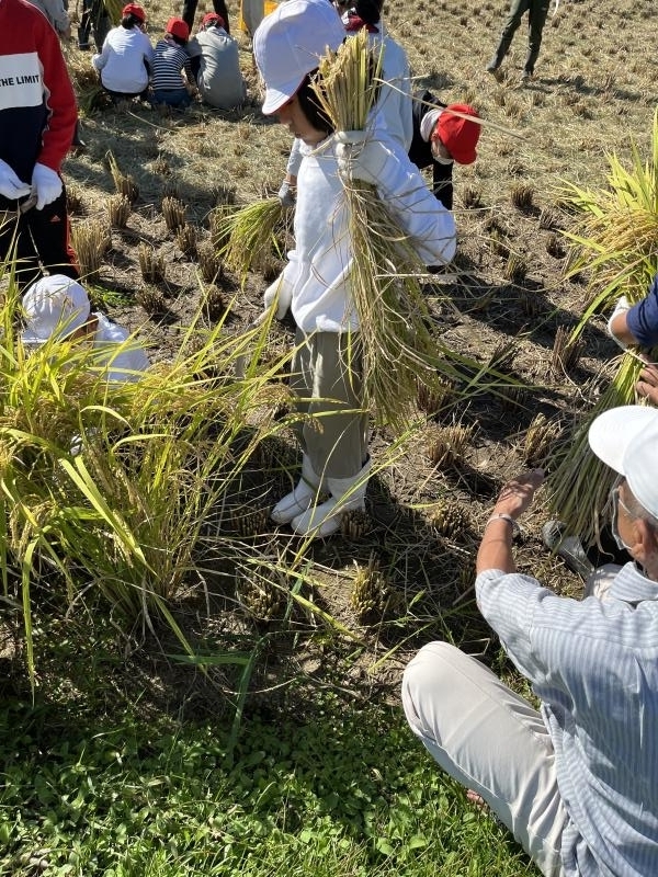 10月10日沼田東小学校 5年生米作り体験学習会で、稲刈りを行いました。